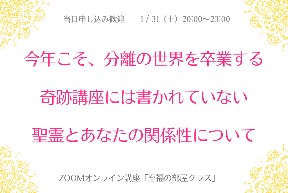 今年こそ、分離の世界を卒業する。奇跡講座には書かれていない聖霊とあなたの関係性について / 「至福の部屋クラス」