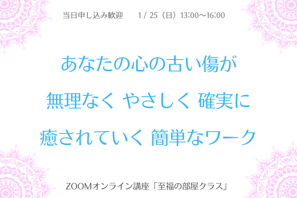 あなたの心の古い傷が、無理なくやさしく確実に癒されていく簡単なワーク / 「至福の部屋クラス」