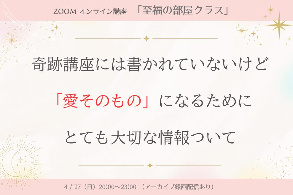 奇跡講座には書かれていないけれど「愛そのもの」になるためにとても大切な情報について / 「至福の部屋クラス」